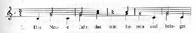 Lied Das Neue Jahr, das tritt herein" von der Blasmusik Königstetten. Frau Roch aus Weinzierl war dieses Lied mit allen Strophen bekannt, sie sang es uns beim Neujahrsblasen einmal komplett vor. Es ist auch mit etwas anderem Text im Buch Lieder aus dem Tullnerfeld" (Sammlung Leopold Bergolth) enthalten.
